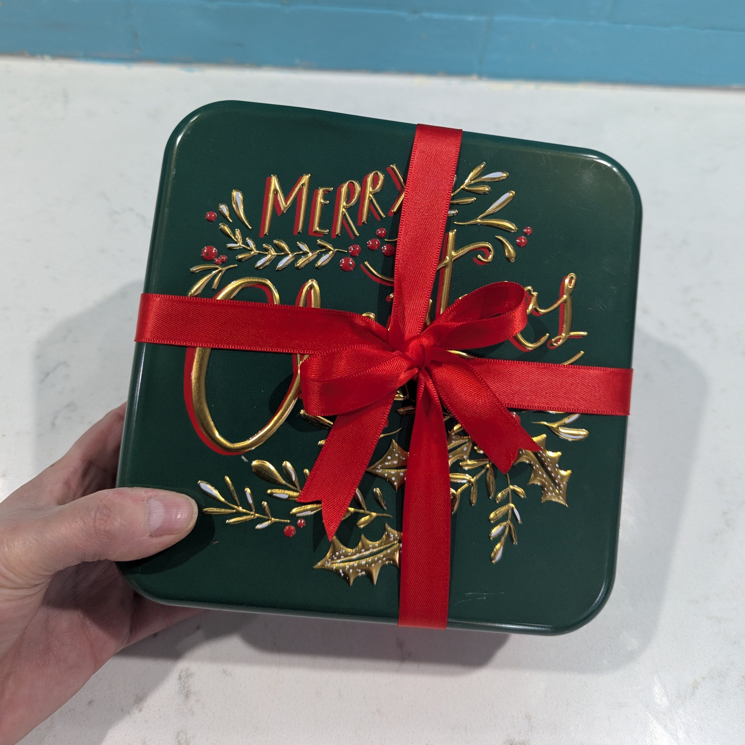 With a Cookie Tin & ribbon?