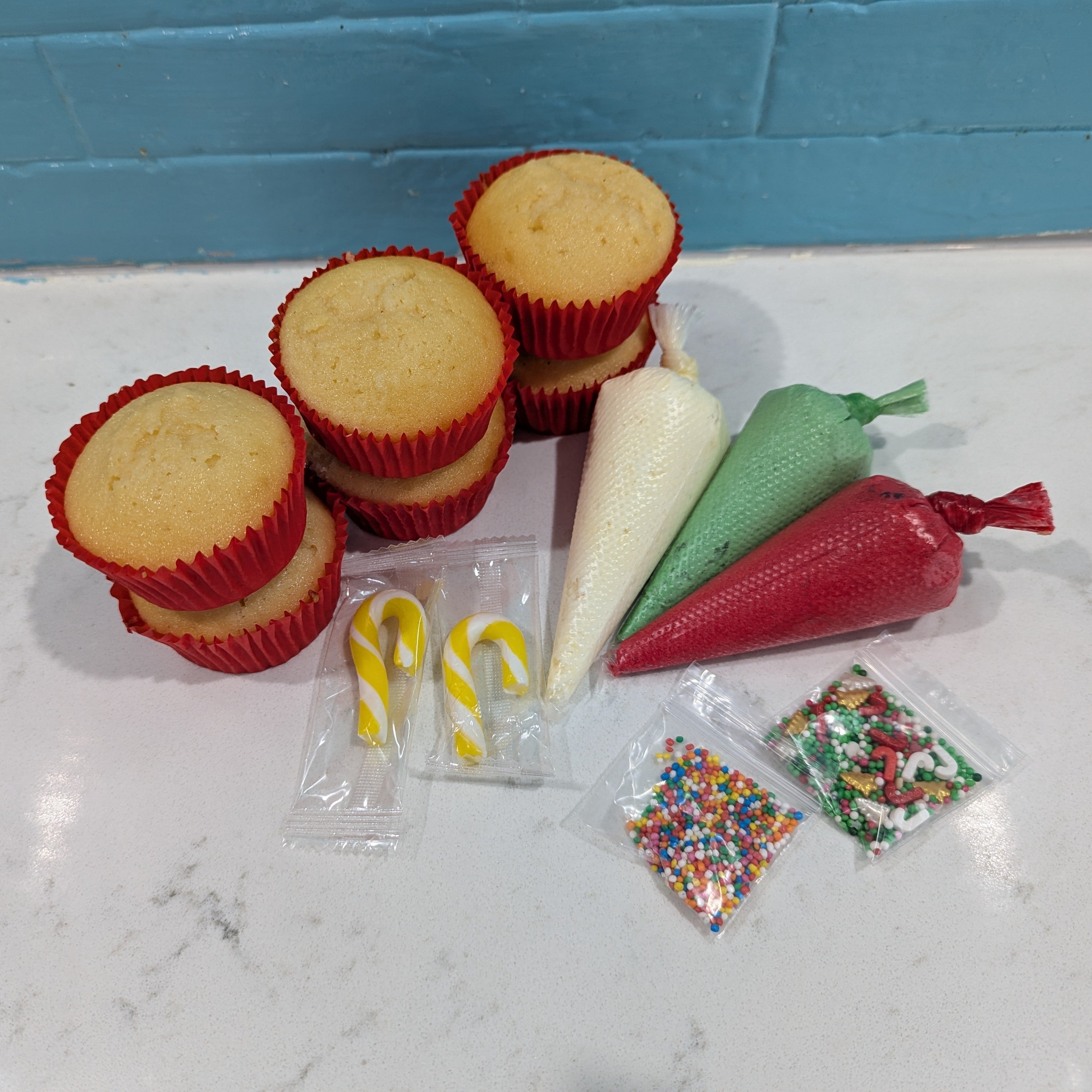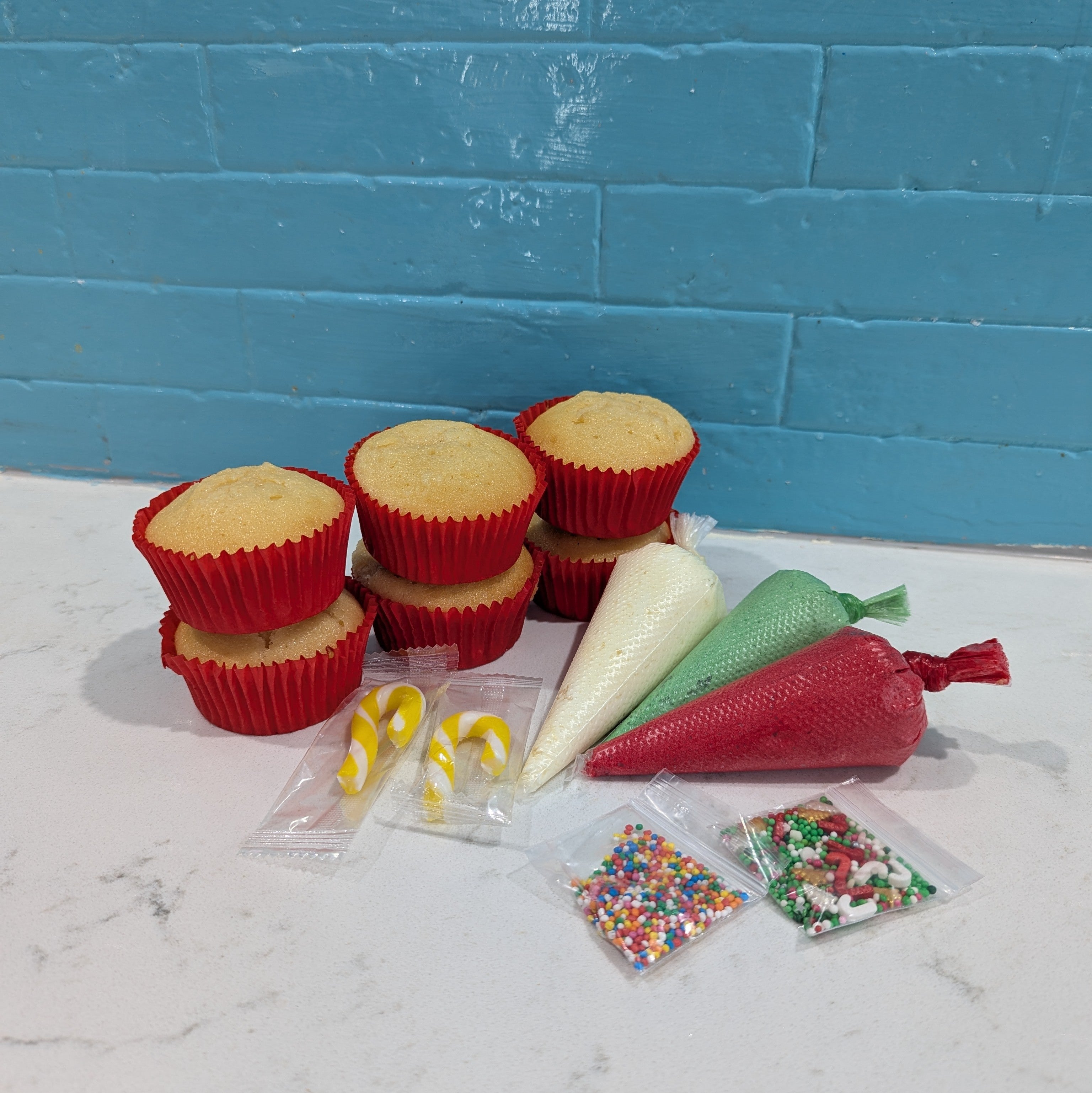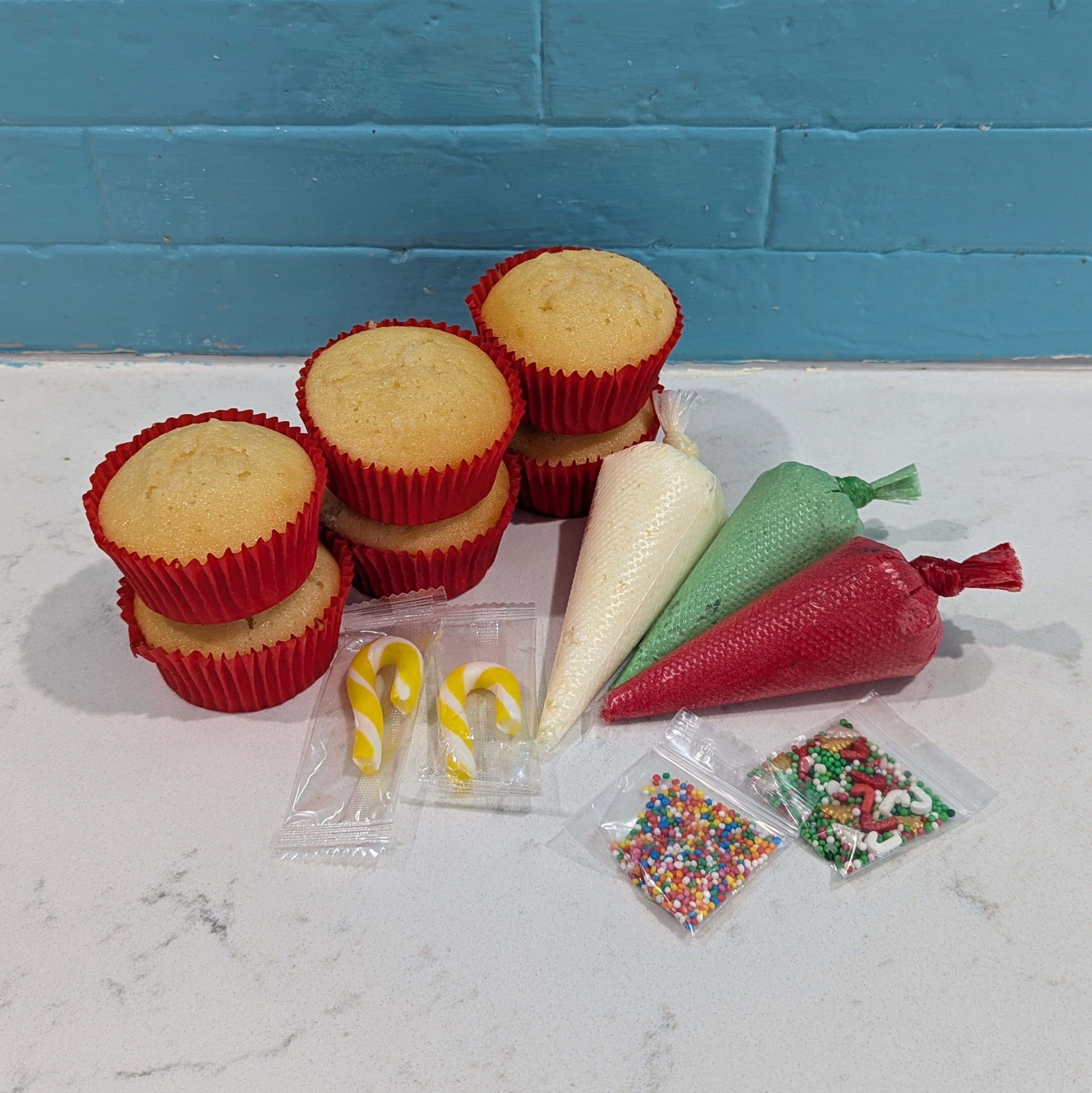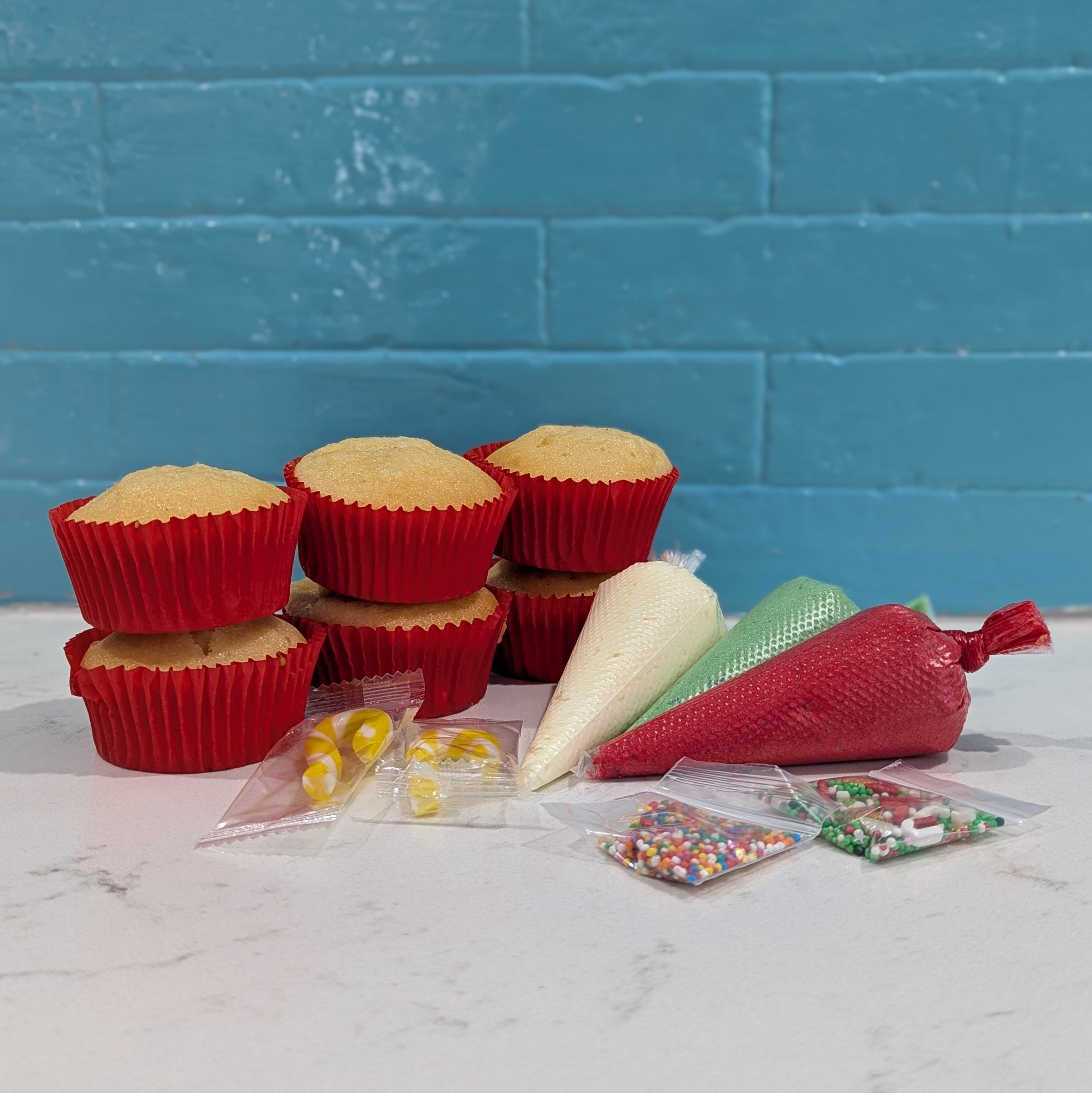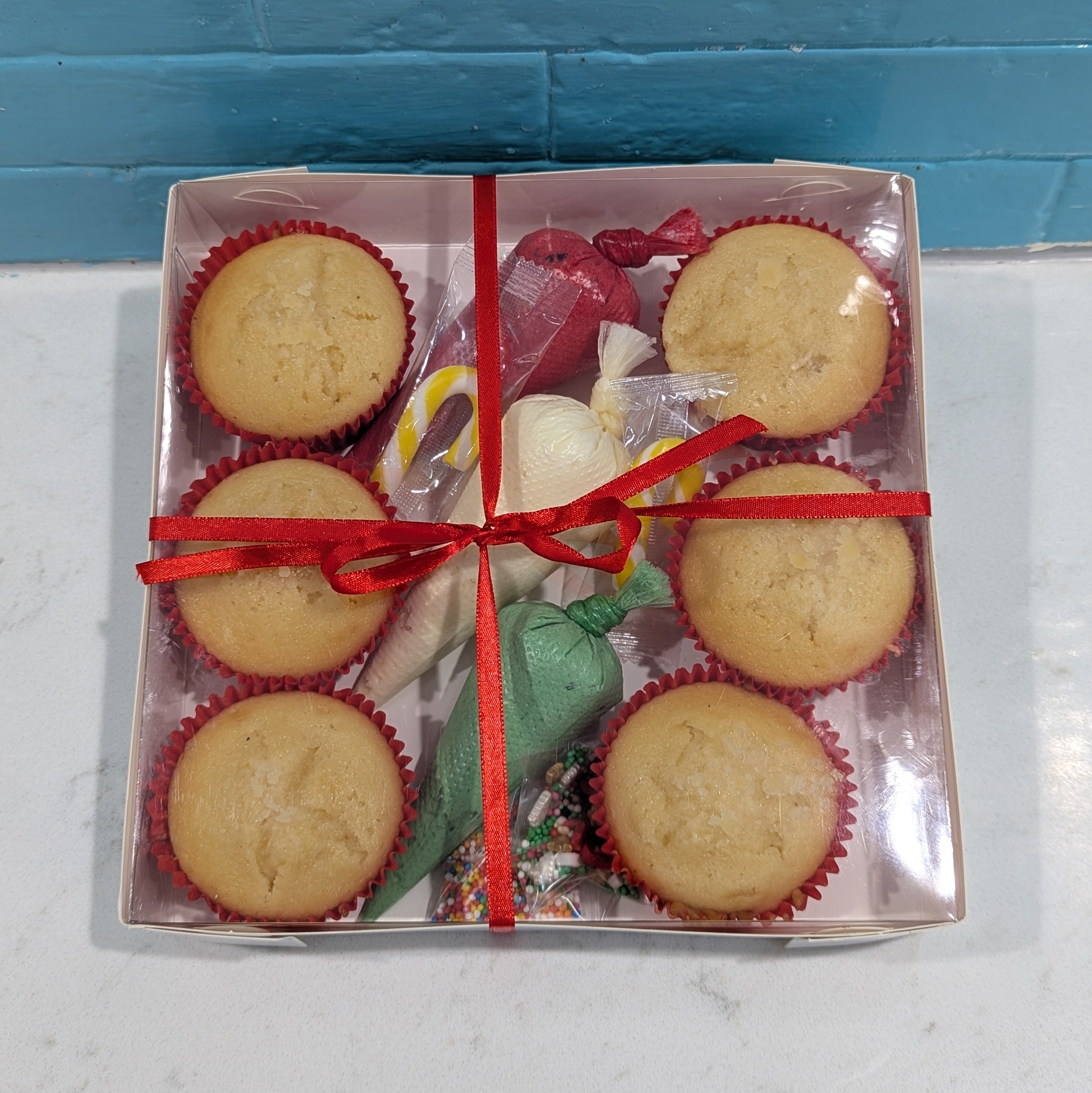 Get ready for cupcake chaos and creative fun! Our Christmas Cupcake Decorating Kit brings the sweetest entertainment to your holiday season. Inside you'll find six fluffy vanilla cupcakes, three tubs of smooth buttercream, colourful sprinkles, and a festive candy cane to top it all off. Let the kids unleash their inner artist as they frost, sprinkle, and decorate their own delicious creations. Each kit arrives beautifully gift boxed and ribboned—perfect for gifting or keeping the little ones happily occupied.