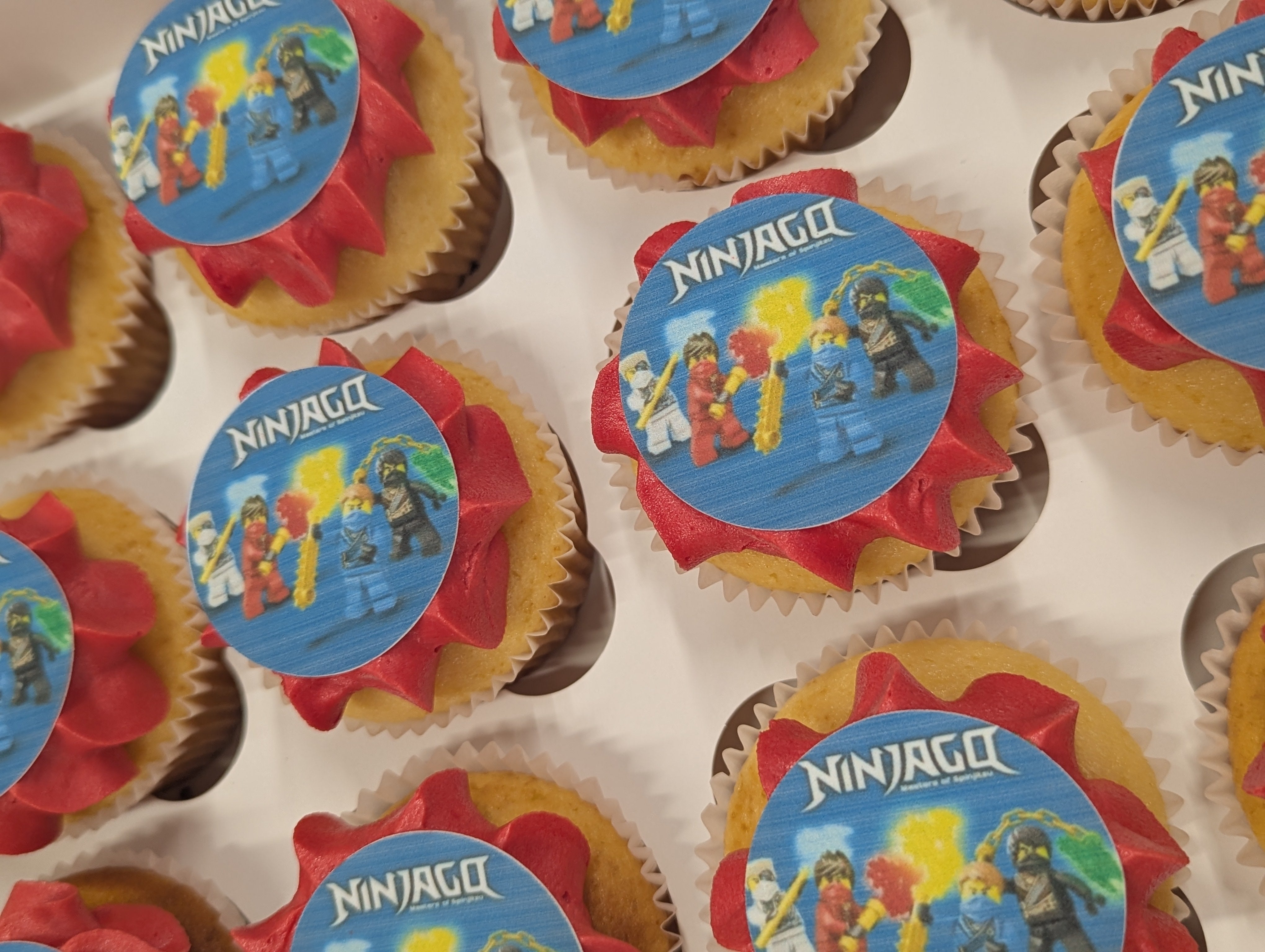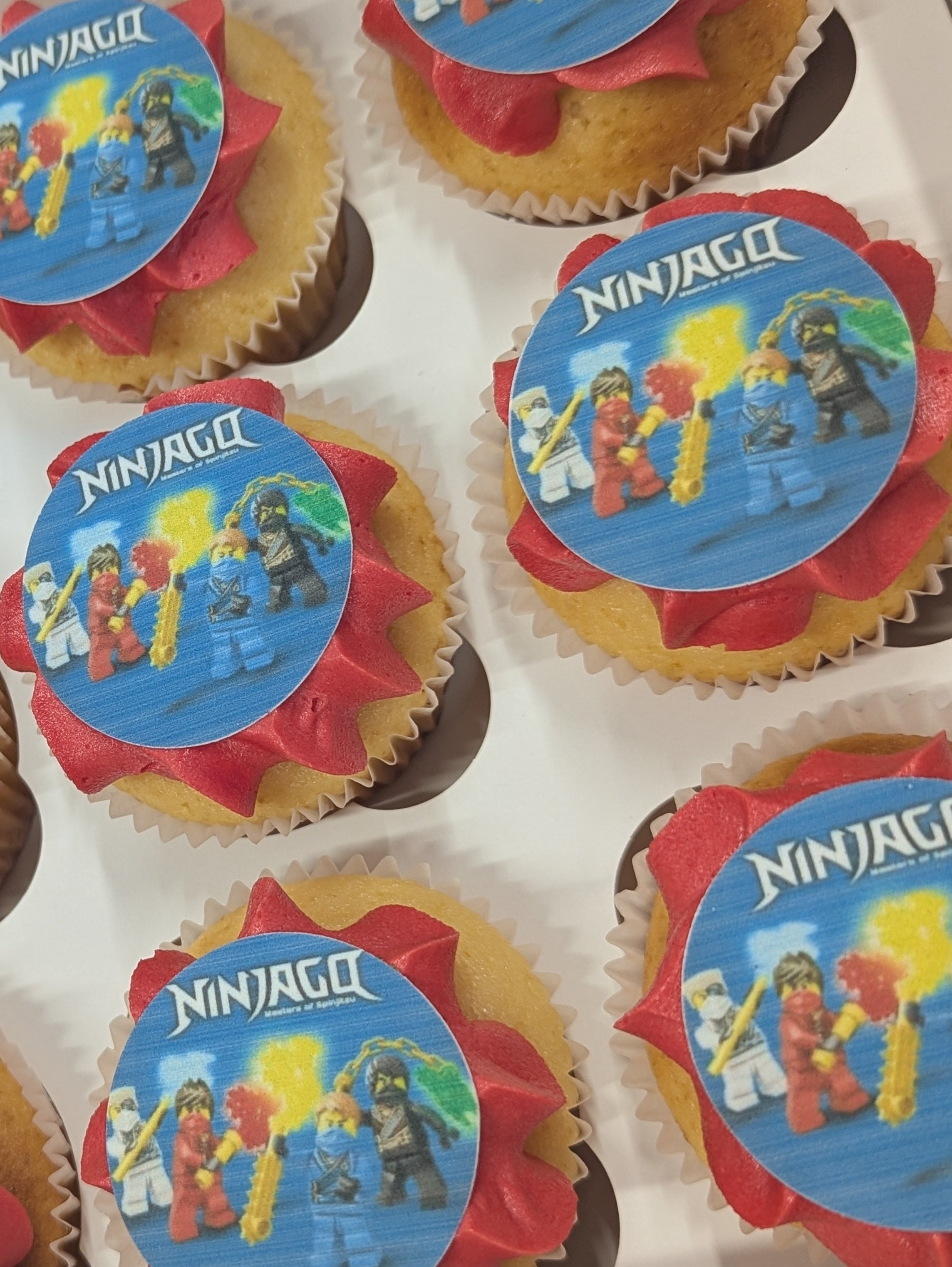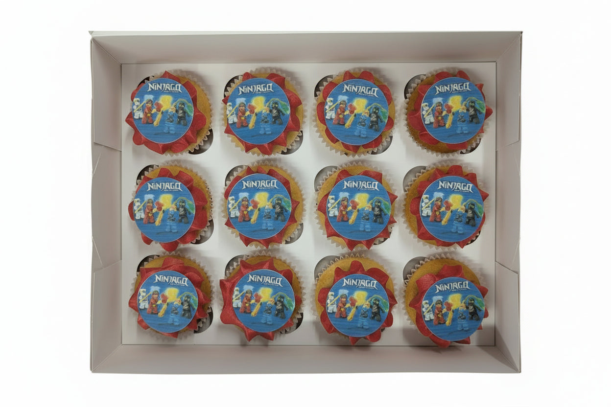 Get ready to unleash your inner ninja with these Ninjago Cupcakes! Choose between the classic duo of vanilla or chocolate, all decked out with swirls of eye-popping red buttercream and adorned with your favourite Ninjago characters. Perfect for parties or just a sweet treat.